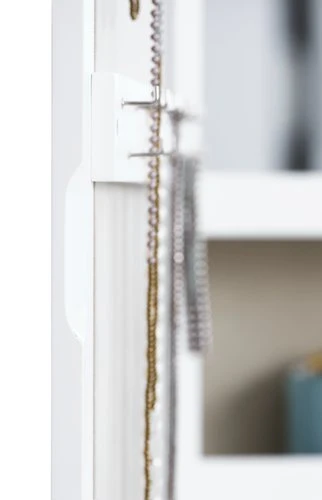 En MDF, verre miroir, acier. Pratique pour organiser et ranger vos bijoux et autres accessoires. l35 x H60 x P12 cm