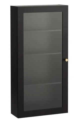 En MDF, acier et verre trempé. l40 x H80 x P15 cm