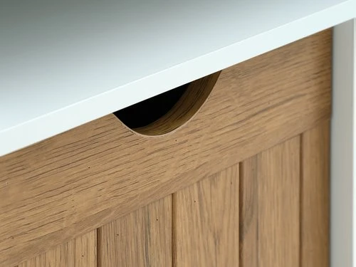 En MDF, bouleau massif, panneau de particules placage décoratif papier. Revêtement : coton. Garnissage : mousse polyuréthane (12 kg/m³). l102 x H50 x P39 cm
