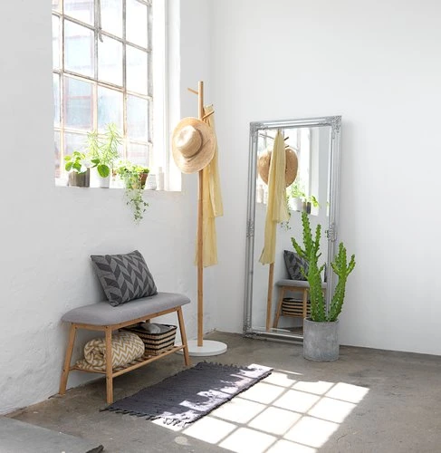 Structure : MDF. Garnissage : mousse polyuréthane (18 kg/m³). Revêtement : 100% polyester. Pieds : bambou. Vernis. l90 x H45 x P34 cm