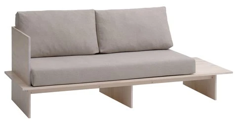 En pin massif. Garnissage : mousse polyester (28 kg/m³). Revêtement : polyester. Les coussins peuvent être arrangés pour faire un couchage. l204 x H72 x P78 cm