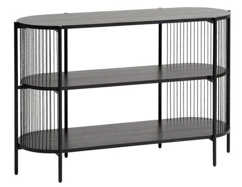 Cadre et pieds : acier. Étagères : MDF mélaminé, placage chêne. Côtés : papier. l124 x H80 x P44 cm
