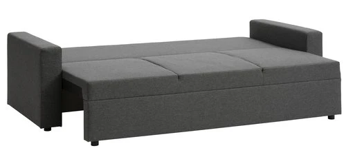 En HDF, contreplaqué, hêtre/pin massif, acier. Garnissage : mousse polyuréthane (25-30 kg/m³). Revêtement : polyester. Pieds : polypropylène. Avec espace de rangement. Couchage : 135×195 cm. 3 places. l225 x H74 x P91 cm.