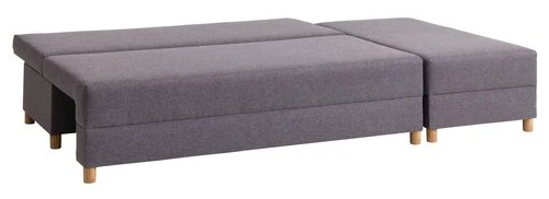 Structure : panneau de particules HDF, hêtre massif. Rembourrage : fibre-mousse polyuréthane (28 kg/m³). Revêtement : polyester. Piètement : plastique. Réversible. Avec rangement. Couchage 110×213 cm. l214 x H69 x P81/122 cm