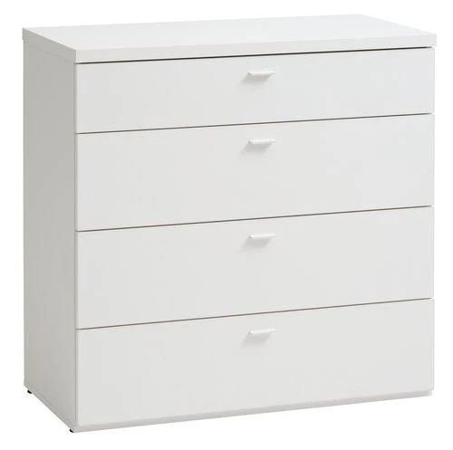 En panneau de particules mélaminé, placage décoratif. Côtés : panneau de particules. 4 tiroirs. l91 x H90 x P45 cm
