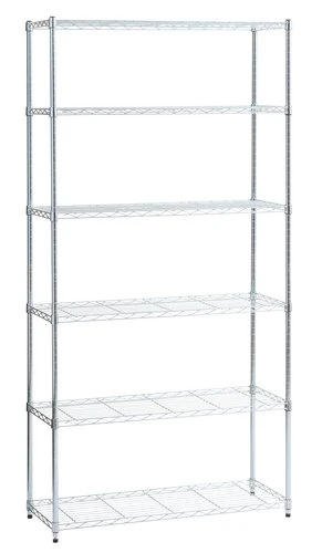 En acier. 6 tablettes. l90 x H180 x P36 cm
