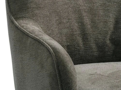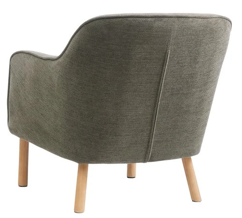 En contreplaqué, acier. Garnissage : mousse polyuréthane (16/20/22 kg/m³). Revêtement : polyester. Pieds : bois de caoutchouc massif. l70 x H73 x P74 cm