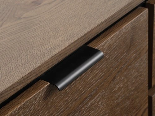 Cadre : panneau de particules mélaminé, chêne et pin massifs. Partie supérieure : panneau de particules, placage chêne, chêne massif. Côtés, portes, faces tiroirs : panneau de particules, placage chêne. Étagère : panneau de particules mélaminé. Pieds : MDF, pin massif. Incl. 1 étagère. 2 portes, 3 tiroirs. l150 x H80 x P40 cm