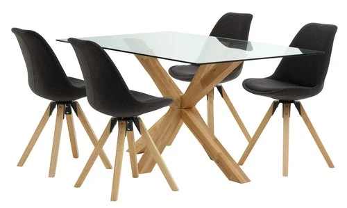 | Matériaux | Partie supérieure: Verre trempé, Pieds: Chêne massif, Acier |