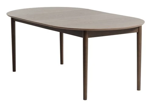 Plateau : MDF, placage chêne, acier. Cadre : bouleau et bois de caoutchouc massif. Pieds : bois de caoutchouc massif et acier. Vernis. Incl. 2 rallonges. Dimensions table déployée : l110 x L200 x H75 cm