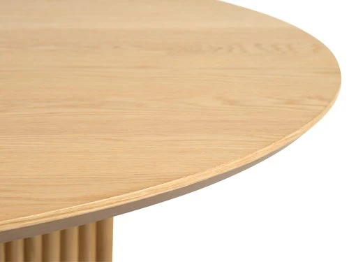 En MDF, placage chêne. Pieds : MDF, placage chêne, panneau de particules, chêne massif. Vernis transparent. Ø130 x H75 cm