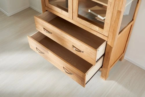 | Tiroir | Face avant: Placage chêneLe placage de chêne est constitué de fines couches de bois massif collées sur un panneau de particules ou un panneau MDF. Il offre l'aspect authentique du bois naturel massif., Panneau de particules, Chêne massif, Sommier: MDF (panneau de fibres moyenne densité)Les panneaux MDF consistent de fibres de bois coupés très fins, collés sous pression., Placage chêneLe placage de chêne est constitué de fines couches de bois massif collées sur un panneau de particules ou un panneau MDF. Il offre l'aspect authentique du bois naturel massif., Côté: Pin massif, Dossier: Pin massif |
