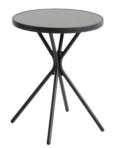 Cadre et pieds : acier. Plateau : verre trempé. Ø60 x H70 cm