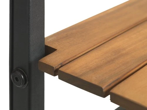 | Matériaux | Cadre: Acier galvaniséLa galvanisation protège l'acier contre l'usage et la corrosion. La galvanisation suit un processus auquel on ajoute du zinc sur l'acier qui est favorable pour la durabilité de l'acier., Dessus de table: Bois d'acacia massif |