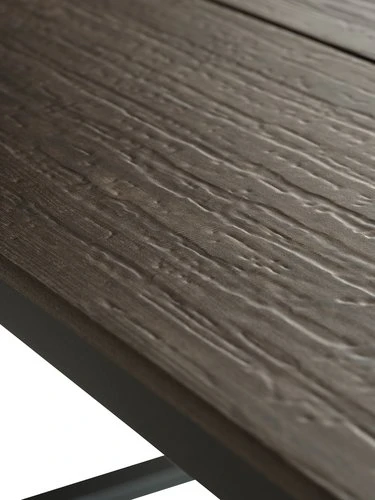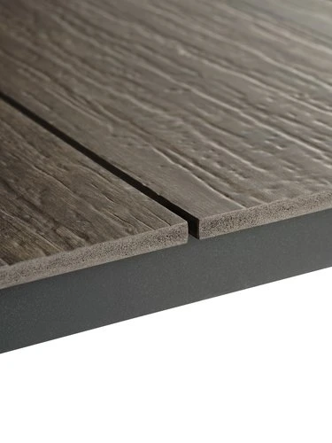 | Matériaux | Cadre: AluminiumL'aluminium est un matériel léger et élégant qui ne rouille pas. Il n'est pas nécessaire de le maintenir et le matériel est facile à nettoyer avec un chiffon humide., Dessus de table: Imitation bois (polystyrène)Cette imitation bois est faite à partir d’un matériau synthétique sans entretien dont la structure créé un effet de bois naturel. Elle est fabriquée à partir de plastique, tel que le polystyrène, qui constitue un matériau durable et résistant aux intempéries. Cette imitation bois est protégée contre les UV, ce qui garantit une surface dont la couleur ne change pas., Pieds: Acier |
