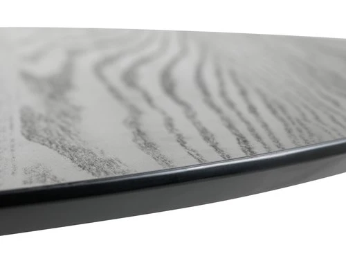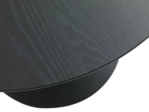 Plateau : MDF, placage frêne. Structure : béton, acier, polypropylène. Pieds : acier. Vernis. Ø100 x H75 cm