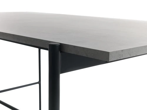 Plateau : panneau de particules mélaminé, PVC. Pieds : acier. l80 x L140 x H75 cm